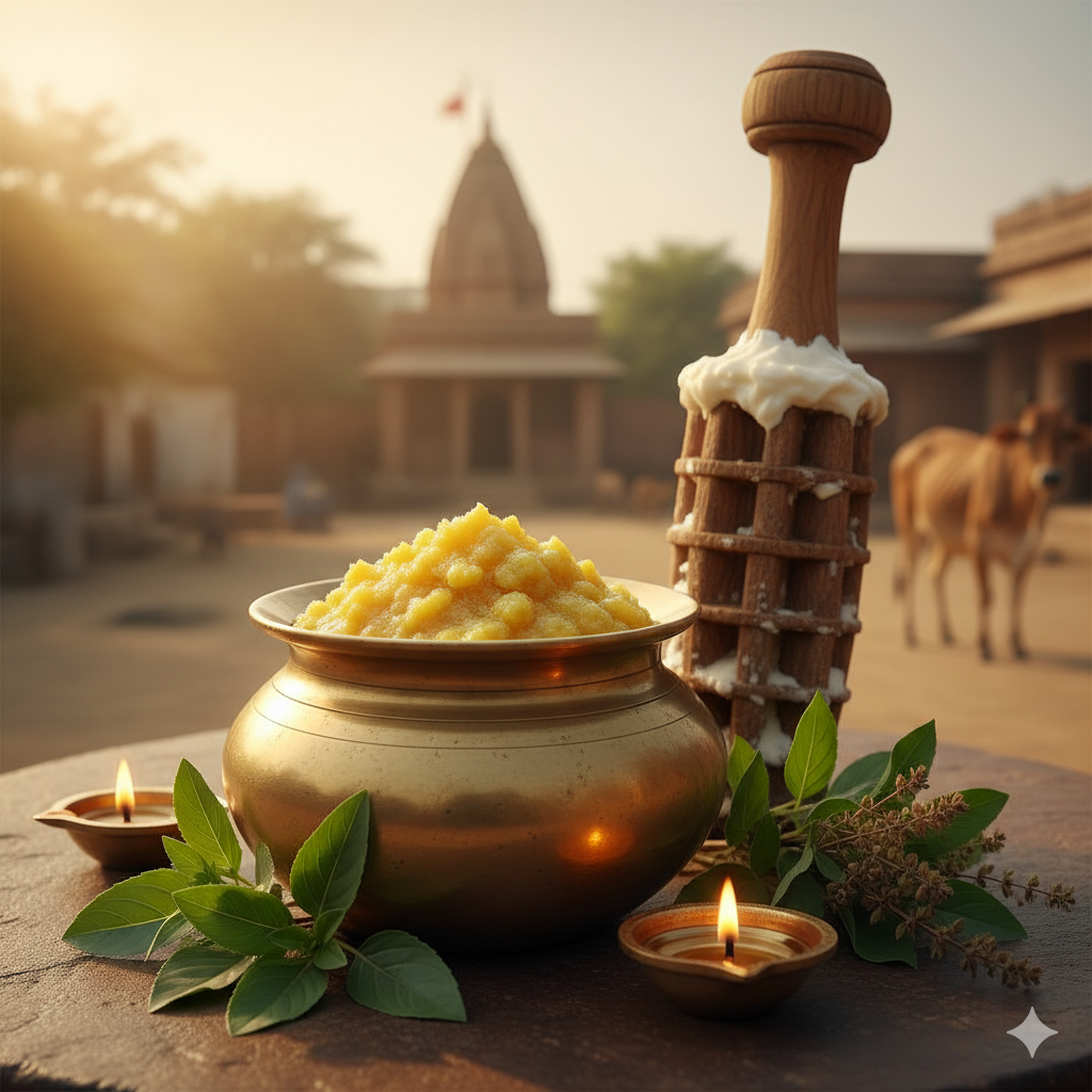 Preserving India’s ancient Bilona method-hand-churned with devotion to retain nutrients, aroma, and savery every drop